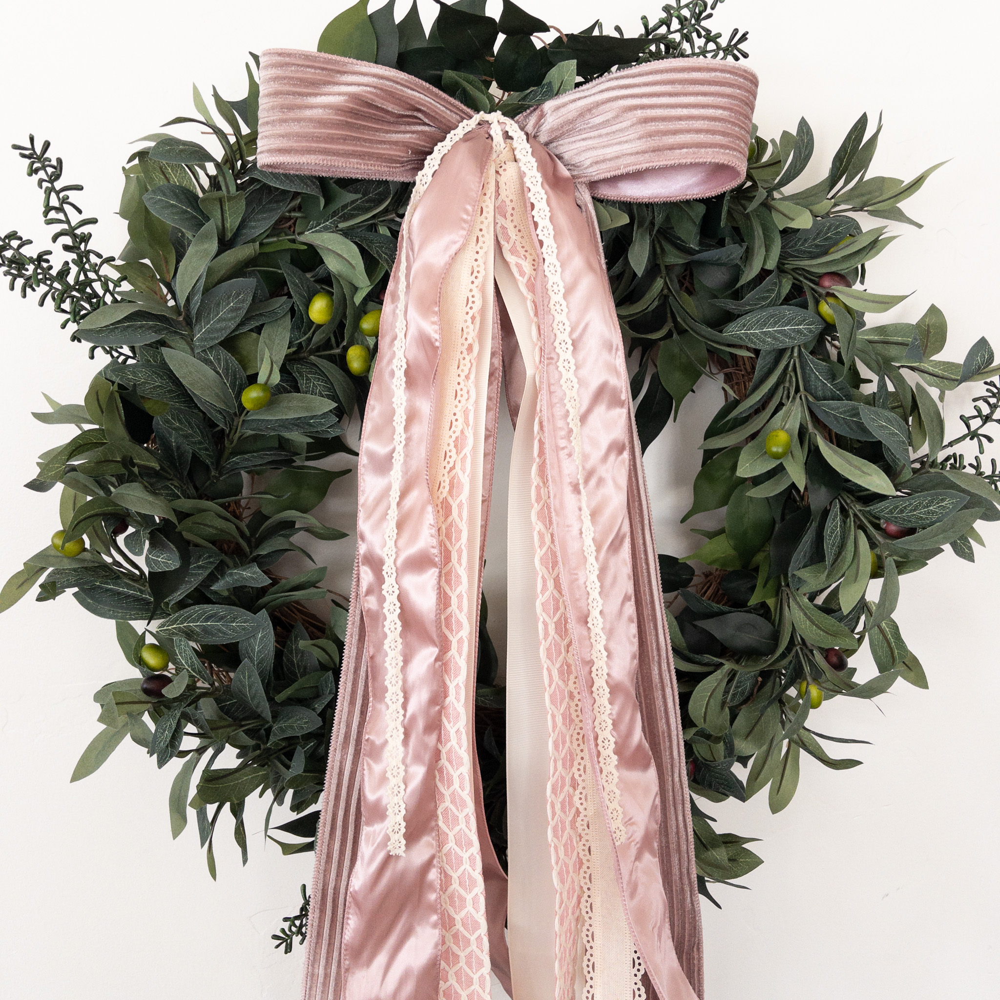 ➼ This beautiful layered ribbon set features a romantic mix of luxe ribbed velvet, satin, canvas, and cotton. This set is perfect for a gorgeous, feminine look to use alone or added to one of our One Simple Wreath kits.