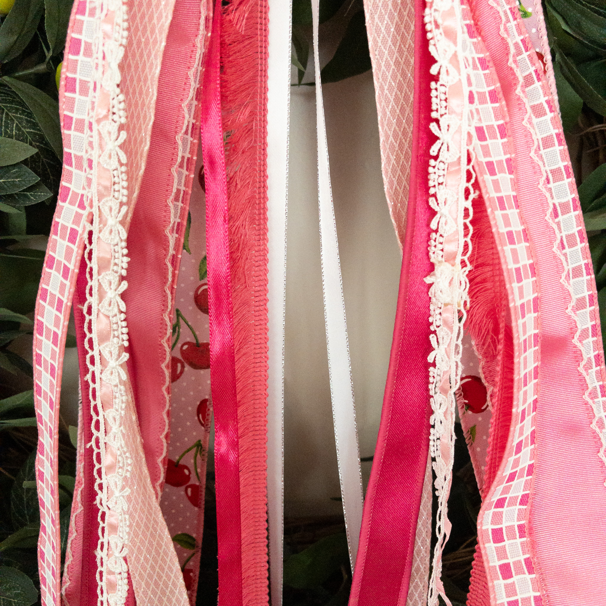 ⪼Features a curated mix of premium ribbon styles and trims. Each piece is handmade; slight variations will occur. This ribbon set includes: One 2.5" cotton wired cherry and polka dot bow with at least 8 coordinating luxe ribbon tails. Please note that ribbons may not be exactly as picture shows.